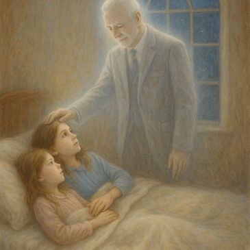 He signalled for me to wake my sister, then, without opening the window, he came through and stood beside our bed. What followed was one of the most sacred moments of my life. He leaned in and touched our faces with such gentleness, such love, that I can only describe it as being embraced by pure spirit. The feeling was beyond words—calm, safe, and utterly enveloped in love. His goodbye was brief but deeply emotional, and even now, decades later, I remember his words and the feeling he left behind with vivid clarity. It was the first time I truly understood that love transcends the veil.